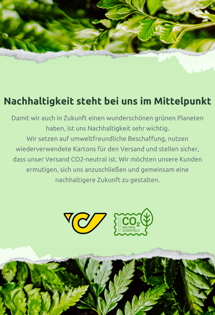 Bei 'Bewusst Leben' steht der Kunde im Mittelpunkt. Wir sind mehr als nur ein Geschäft – wir sind eine Gemeinschaft, die einen bewussten Lebensstil lebt und atmet. Unsere Mission ist es, unsere Kunden dabei zu unterstützen, achtsamer mit ihrem Körper und ihrer Umwelt umzugehen. Nachhaltigkeit ist für uns nicht nur ein Schlagwort, sondern ein Versprechen. Wir setzen auf CO2-sparenden Versand und recycelte Kartonverpackungen, um unsere ökologischen Auswirkungen zu minimieren. Bei uns können Sie sicher sein, dass Ihr Wohl und das unseres Planeten an erster Stelle stehen.