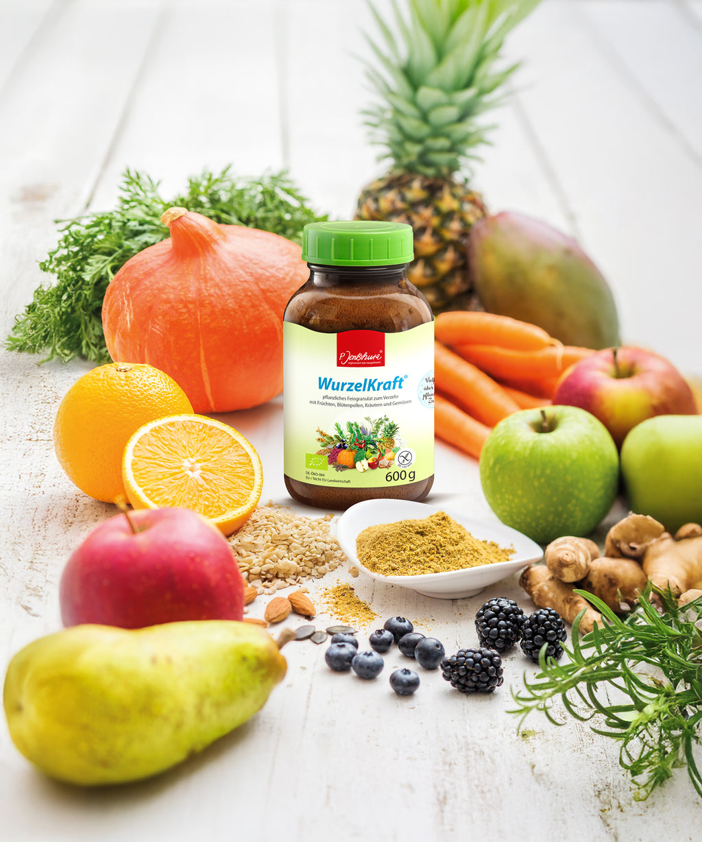 Mit der Kraft von mehr als 100 Pflanzen ist WurzelKraft der verlässliche Rundumversorger und der perfekte Partner, wenn es um eine basische Ernährung geht. Das omnimolekulare Naturlebensmittel unterstützt Wohlbefinden und Vitalität für ein Leben in Balance und kräftigt – nicht zuletzt aufgrund seines hohen Anteils an Bitterstoffen – nachhaltig unsere Abwehrkräfte und unser Immunsystem. Löffel für Löffel ein basischer Genuss, der stärkt und vor Nährstoffmangel schützt.