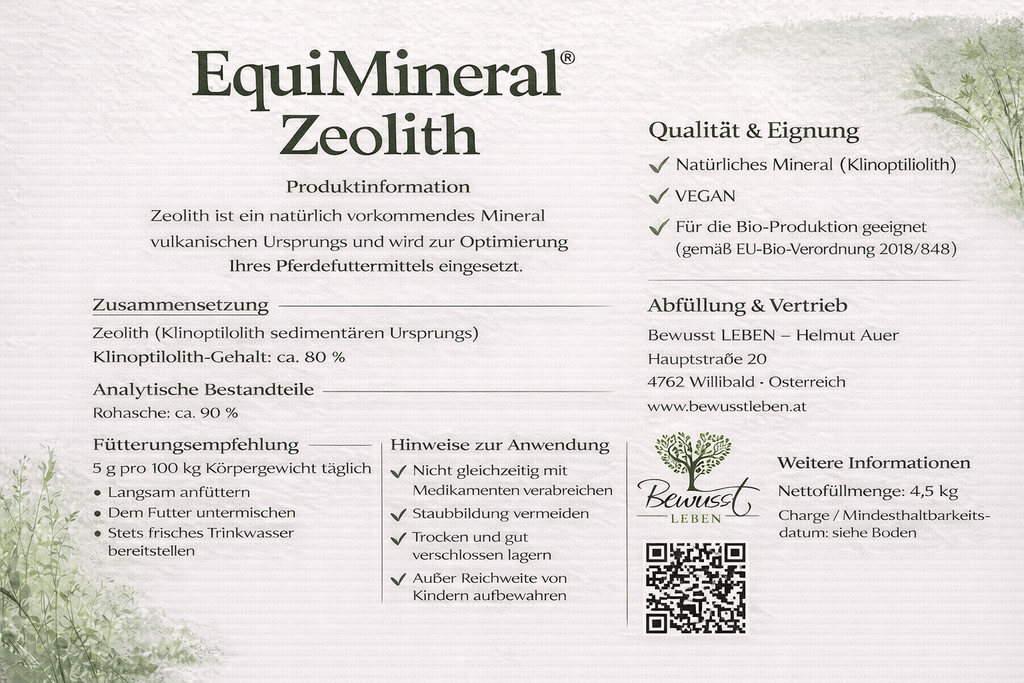 100 % Natur-Klinoptilolith-Zeolith speziell für Tiere.